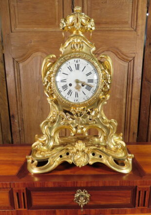 PENDULE CARTEL A POSER DE STYLE LOUIS XV EN BRONZE DORE