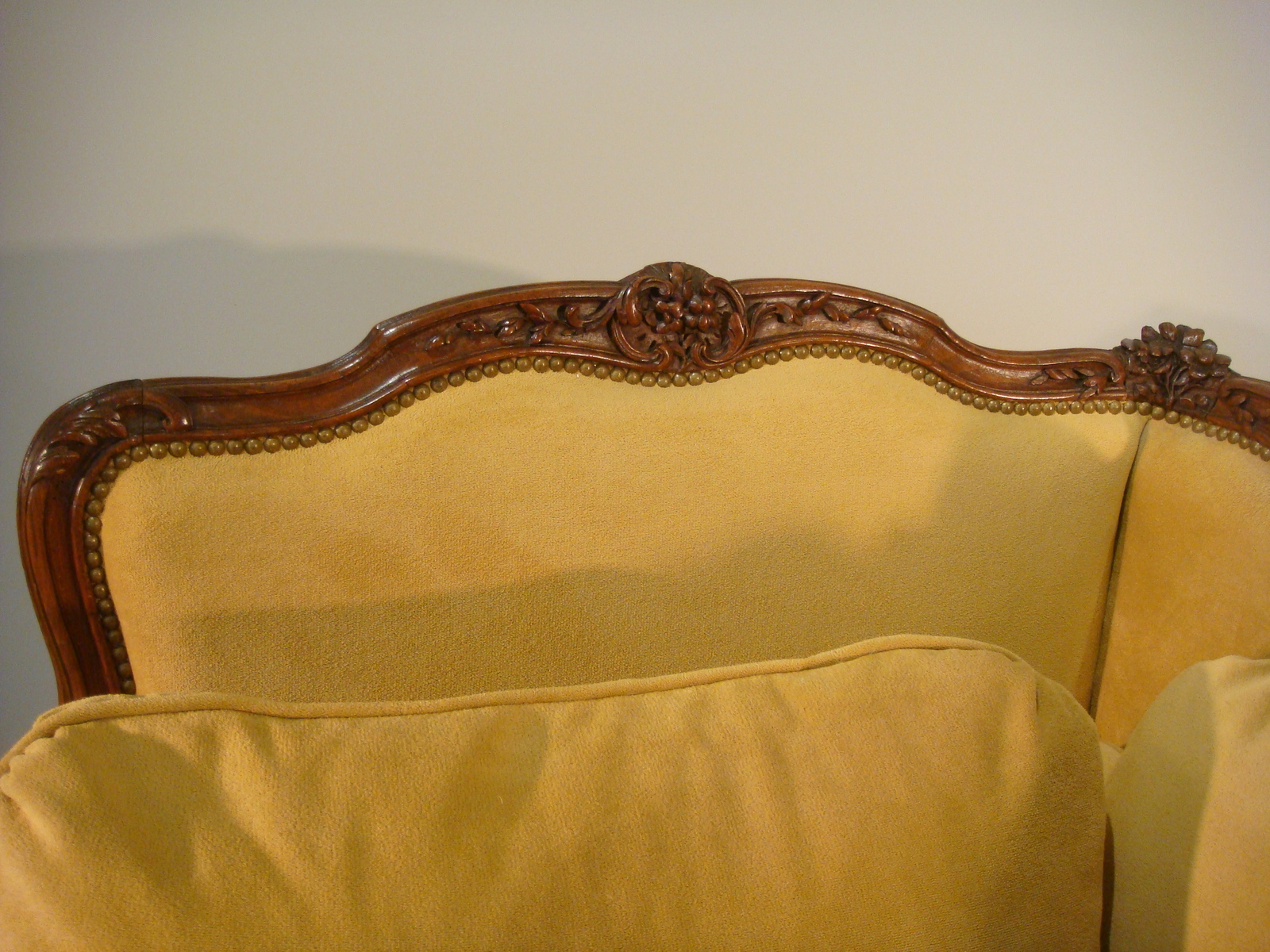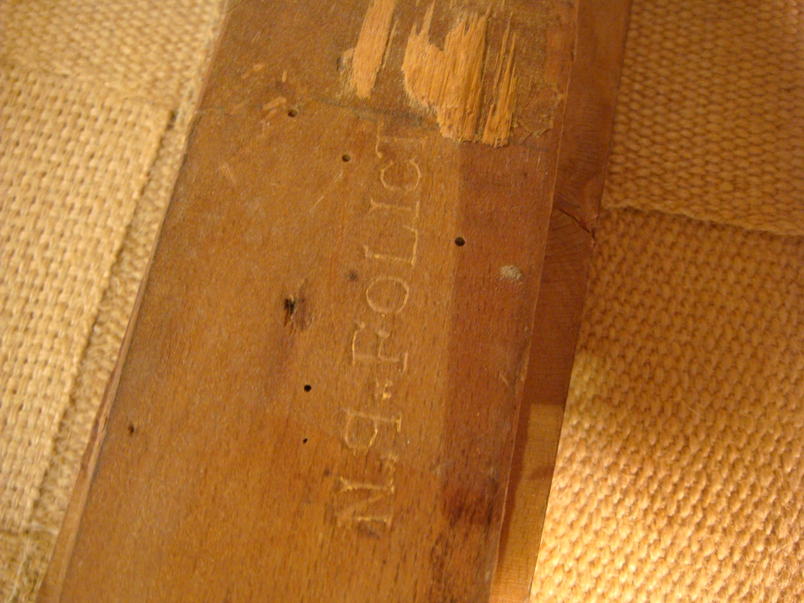 Ce canapé présente quelques restaurations d’usage et a été retapissé, il y a une dizaine d’année, il présente quelques taches et frottements sur le coussin principal.