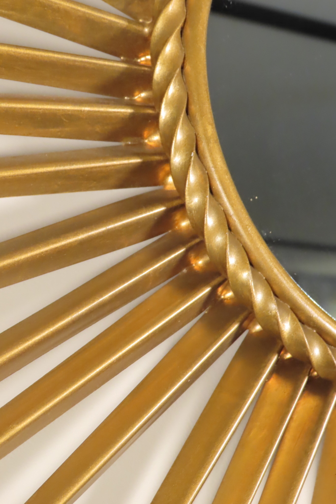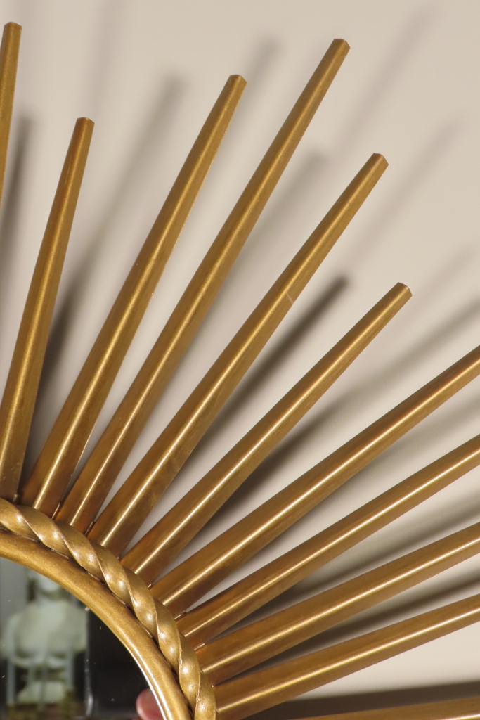 Miroir Soleil à multiples rayons en acier torsadé et laiton. miroir d’époque vers 1950 signé sur l’arrière Chaty à Vallauris.