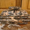 Encrier en marbre, brèche d’Argentré Mayenne, veiné mouluré à couvercle en prise aplatie et son intérieur compartimenté. Cet encrier est soutenu par quatre pieds en boule écrasée. Il présente sur le couvercle deux manques dans les angles sur un coté et deux anciennes restaurations sur l’autre coté. Encrier d’époque Louis XIV .