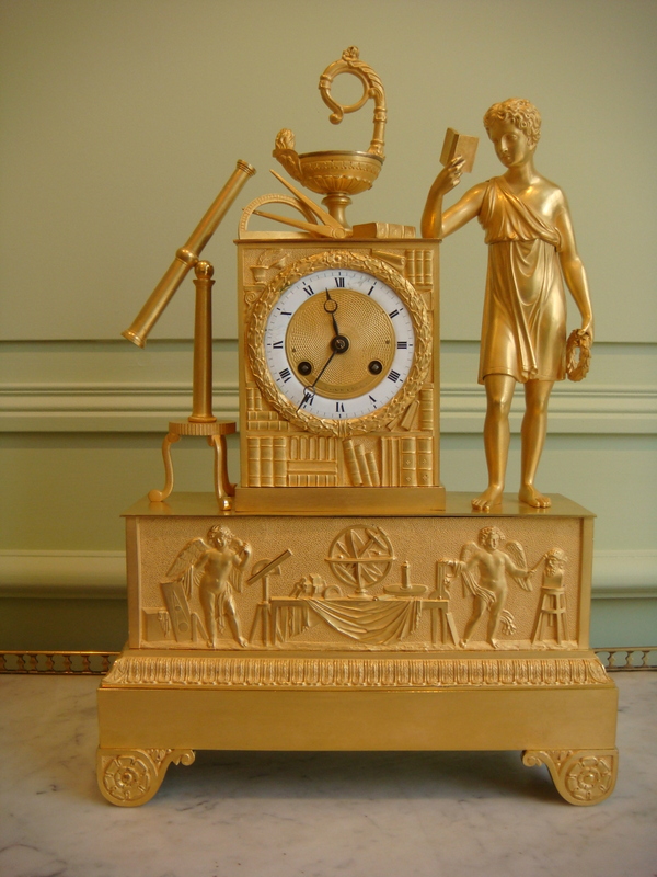 PENDULE ALLEGORIE DES SCIENCES EN BRONZE DORE