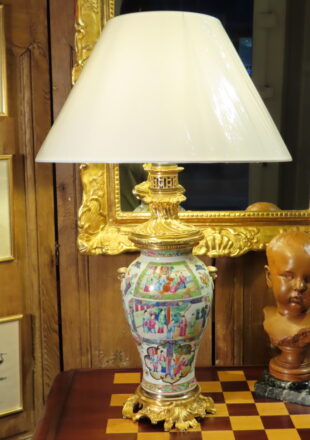 VASE LAMPE EN PORCELAINE DE CHINE MONTEE BRONZE DORE