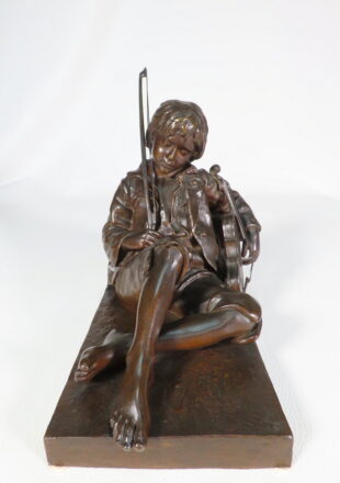 SCULPTURE EN BRONZE JEUNE VIOLONISTE ENDORMI