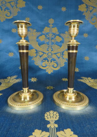 PAIRE DE BOUGEOIRS EN BRONZE BRUN ET BRONZE DORE
