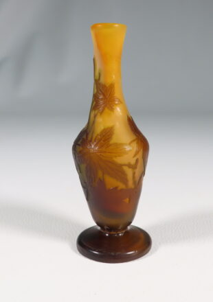 GALLE VASE FUSILFORME A DECOR DE FEUILLES DE CHATAIGNIER